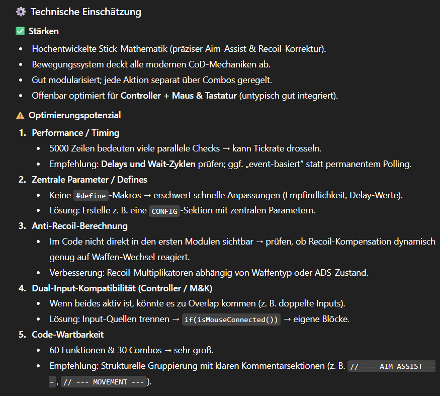 Wir haben unser "PROJECT IRIDESCENT v3.0 Aurora Bo7/Warzone" Script von Chat GPT analysieren lassen.